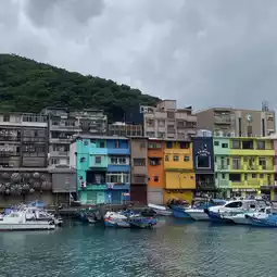 Keelung has many other tourist attractions, but let's review the popular Rainbow Harbor for everyone first! This harbor has buses that come right to it. You can go down and take pictures near the harbor. On the side of the Rainbow Building, there are cafes and restaurants next to each other. It is not far from the bus stop. But because Keelung is the northernmost part of Taiwan, it often rains. They call it the city of rain, lol. So if you go there and it rains or the sky is not beautiful, it is normal. But if you go there and the sky is clear, it is considered very lucky!