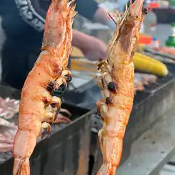 Soon, I saw the boss hanging a basket full of fresh seafood high above the oven, and then using all his skills to stir-fry the plump, sweet and fresh seafood with a brush and a spatula, emitting waves of tempting aroma.