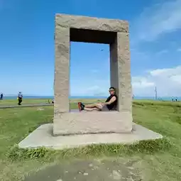 This trip offers a mix of mountain and sea experiences, with stunning natural rock formations and human-made art installations, all under beautiful weather, making for a great mood.