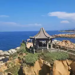 Heping Geopark is located by the sea and is beautiful. The day I went, the weather was good and the sky was clear. I took pictures of the beautiful color of the sea. There are many strangely shaped rocks on the island, which were formed by sea erosion. At the viewpoint, there is a small pavilion where you can stand and enjoy a panoramic view of the sea. It is beautiful.