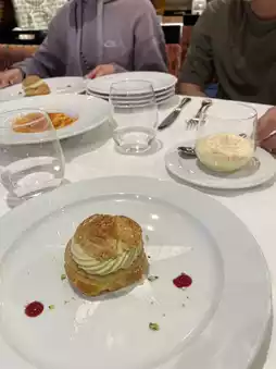 Dinner on the first day was at the Vista Restaurant on the 3rd floor, divided into two seatings: 5 PM and 7 PM. We were in the 7 PM seating. Once seated, it’s recommended to order immediately as the ordering and serving process is quite slow—we didn’t start eating until almost 8 PM. During dinner, photographers came to take pictures of us, but if you want the photos, you’ll need to pay extra. You can purchase them directly using your room card at machines on the 5th floor.