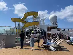 There are plenty of activities onboard, though we missed many due to insufficient planning. It’s recommended to arrange your schedule in advance. We heard the theater performances are quite good. On sunny days, you can also head to the top deck to sunbathe, where there’s a swimming pool and water slide.