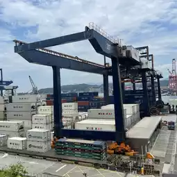 Right next to the container yard, I saw a crane lifting containers. It looked like a toy. It was fun and awesome.