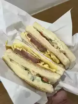 The toast had distinct charcoal marks and a burnt aroma, and the ham, egg, tomato, cucumber, and other toppings were generously layered, giving you a unique taste with each bite, creating a super satisfying experience. The iced cocoa is not sweet, with a hint of chocolate bitterness, which pairs perfectly with the toast! By the way, when dining in, you must order one meal per person.