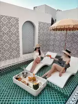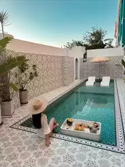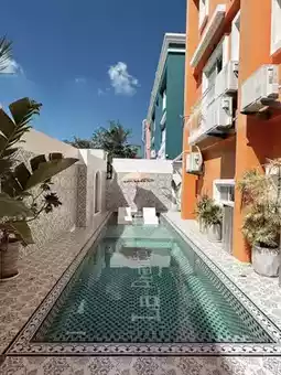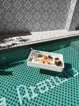 The 10-meter-long tiled swimming pool is from shallow to deep