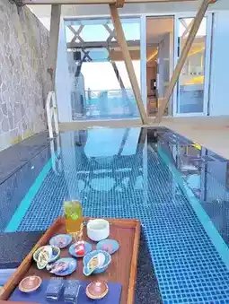 Kenting is for fun. Kenting Volando Villa is a very quiet and private holiday place. There are not many rooms with private swimming pools in the park. They are all located on the first floor. There are a total of six rooms. The hotel provides food to guests like raising pigs. There is a fruit bar in the park. It is available all day long. You can eat as much as you want. There are staff on site to cut it and send it to the room. There is also a midnight snack of seafood porridge delivered to the room. Breakfast and dinner are all in the cafe. The meals are very exquisite and delicious. In addition to the swimming pool, the room also has a large bathtub, and there is also a TV to watch. There is also a small courtyard outside the room. It is really a very comfortable and relaxing place.