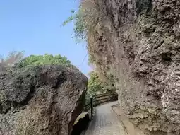 With mountains behind and the sea in front, there are many strange rocks, mainly composed of high coral reefs.