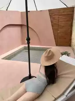 Step outside to find a courtyard, swimming pool, and barbecue area