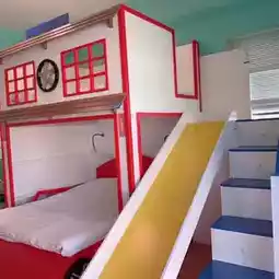 Chenxi Children's Pavilion is a pink building in the Kenting Dream Island community. Because it is a children's theme pavilion, each room has a slide, and it takes good care of children. The children's supplies are of very good quality, and adult toiletries are mostly well-known brands. The environment in the homestay is clean, and each room has an independent balcony and bathroom. Each room also has a different theme design. It is very suitable for small family outings and large family gatherings.