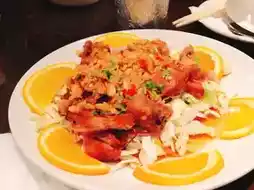 The meal was surprisingly delicious. I recommend the pork fritters, which have a strong sauce flavor and are particularly salty, perfect with Thai rice! The sour and spicy taste of the cold seafood can just neutralize the heavy taste of the fried pork!