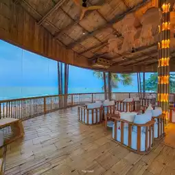 Sea view The seating area is both inside the shop with air conditioning. The 2nd floor is an outdoor atmosphere with sea breezes. Or if anyone wants to sit in the seaside area, there are bean bags to sit and chill while enjoying the sea view.