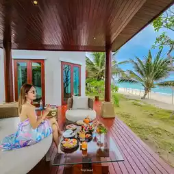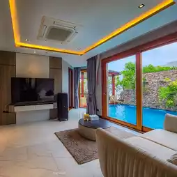 The rooms are villas. There are both poolside rooms that can be connected to the pool from the bedroom balcony. Or choose to stay in a room on the upper floor with a view of the pool. And a 1-2 bedroom Poolvilla that can see the sea view from the front of the room.