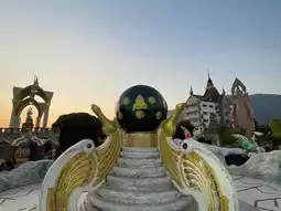 The Five-Colored Pagoda, the main pagoda of the temple, is adorned with millions of colorful tiles, glass pieces, and beads, sparkling like a gem amidst the mountains! Every angle you capture is breathtaking, as if you've stepped into a fantasy world!