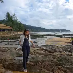 Hat Nang Tang is a beautiful beach with a great atmosphere. The highlight is the black sand. When the sea level drops to its lowest, you can see a wide area of black sand. This makes it a place where people talk about the strangeness of the beach and call it “Black Sand Beach”. There are also small rocks with beautiful and strange colors. There are also shells and small fish in the crevices of the rocks. We really like the atmosphere here. It’s so nice to sit and relax while watching the sunset.