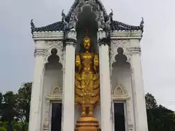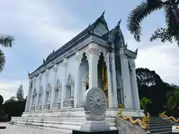 🌿The new ubosot is a striking white building with Buddha images on both sides (front and back) and graceful stucco decorations.