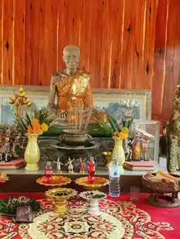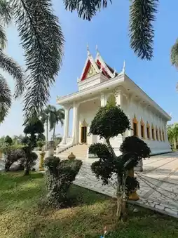 Sacred Objects: Inside the ubosot (ordination hall) is a white jade Buddha image in imperial attire, the largest jade Buddha image in the eastern region. There is also the Wihan Luang Pho Mai (vihara Luang Pho Mai), which houses a century-old wooden Buddha image.