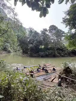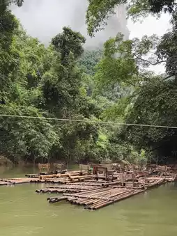 Along the way, there are beautiful nature, unusual mountains, small waterfalls. We were lucky to see a giant snake in a tree. He also rafted under it for us to see. He wasn't afraid of it falling down. Haha. But I like it because we rafted through the package of the accommodation, Khao Sok River Canoe. The car picked us up at the resort. The rafting will end at the resort. ** We can also come down and float along the raft. It's very chill. The water is cool and comfortable. I recommend rafting at 4 pm. It's not hot. **#Khao Sok Surat Thani #Khao Sok #Visit Khao Sok #Visit Surat Thani #Rafting Khao Sok
