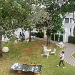 A super chic cafe with lots of photo spots and a chill atmosphere. If the weather is nice, the outdoor area is really great. We have to pay an entrance fee of 100 baht, which we can exchange for drinks and snacks inside. The overall price may be a bit high, but it's considered the entrance fee to see the shop. It's really beautifully decorated.