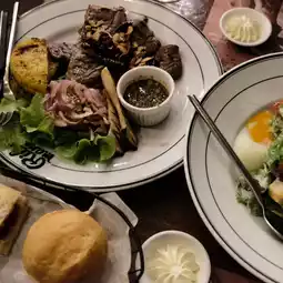 A restaurant on a large area of over 8 rai, there are many seating areas to choose from, there are ground floor, middle floor and upper floor, both indoor and outdoor. Here, there are many types of food to choose from, but the highlight of the restaurant is the smoked menu, steak, pizza, etc. The atmosphere in the restaurant is good, there is live music to listen to, plus if the sun has not set yet, it is more than enough to experience the natural view.