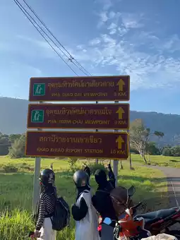For those who want to visit Khao Yai but don't have a private car, I recommend taking the train. Start from Bang Sue Grand Station and get off at Pak Chong Station. For this trip, we rented a motorcycle from a shop near the train station. The journey is convenient, the roads are not too steep, and the scenery along the way is absolutely stunning and very healing. We stopped at Pha Diao Dai and Pha Trom Jai. We stayed at the Lam Takhong camping site, where the weather was perfect—not too cold. It was an incredibly impressive trip.