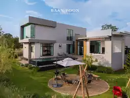 Banyakart is a modern-style café located in Khao Yai, surrounded by nature. The café features a design that seamlessly blends modern and vintage elements. The exterior area, surrounded by lush green scenery, creates a refreshing atmosphere perfect for relaxation. The menu focuses on quality coffee and a variety of baked goods such as croissants and homemade cakes.