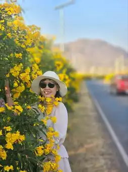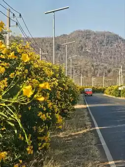 🌹 Hello, I will recommend a place to visit in Khao Yai for friends who have a girlfriend and want to travel alone. I recommend you to stop by the flower road here. Along the long road, we will see golden flowers and there is a rest stop for taking pictures. Friends can check in and take beautiful pictures with the flowers. This period is a bit difficult along the way. Try stopping by.
