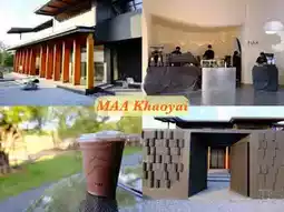 🌳MAA Khaoyai — A cafe that stands out with its modern Japanese-style design, emphasizing black and white tones, combined with a natural atmosphere, making visitors feel relaxed and calm.
