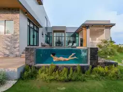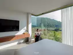 🌳 This summer, gather your family and friends to party at Khao Yai. Baan Poon is a large modern pool villa that can accommodate up to 15 people. It is located in the middle of a valley. No matter where you look, you will see a magnificent mountain view. The atmosphere is quiet. There is a super chic see-through pool, another great photo spot. There is also a camping area, activity area, and a complete party zone. Starting at 6900 baht