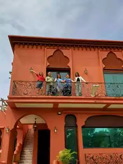 📍This bright orange house is a two-story, three-bedroom house that can accommodate 8 people. It features a dining room with a fully equipped karaoke set. Each bedroom is beautifully decorated in a Moroccan style. There's a separate kitchen outside the house, complete with all the necessary kitchen equipment. We booked this through the Trip app for around 10,000 baht, as it was a long holiday. However, compared to what we received, it was quite good.