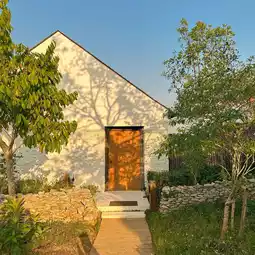 A minimalist white resort with great vibes, filled with the scent of nature.