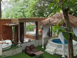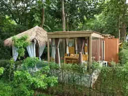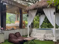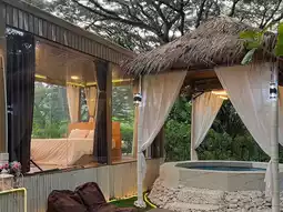 𓂃 Located in Khaoyai, this accommodation is surrounded by lush greenery and nestled by a serene stream. Honeymoon Glamping Khaoyai offers a variety of activities, including cycling, darts, archery, 🍿 Movie Night, and marshmallow roasting. Plus, the stay includes a BBQ buffet with pork, soft drinks, and sparkling beverages from 6:00 PM to 8:30 PM. It's a perfect retreat where you can relax completely without needing to leave the premises.