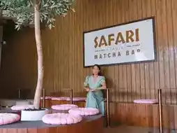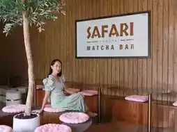👍 Matcha lovers, you have to come with us! This is Safari Khaoyai, a chic safari-themed cafe. The exterior features cute giraffes, while the interior is decorated in warm tones. There's a long, cool bar and photo-worthy corners everywhere. 📸