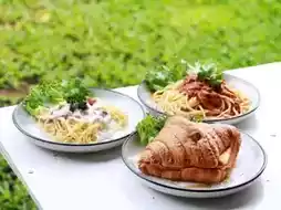 🥐 The food and drink menu is absolutely amazing! They offer spaghetti carbonara 🍝, spaghetti with rich tomato sauce 🥫, freshly baked, fragrant, and crispy croissants 🥐, soft bread 🥯, and cute desserts like cheesecake 🍰, and a refreshing drink 🥤.
