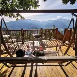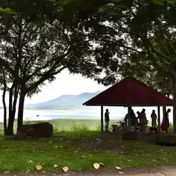 Inside is a shady park with a relaxation area, suitable for stopping to rest, use the restroom, and find a snack before continuing the journey. But even though it looks like a park like this, it has something special hidden in it. Next to the park, we will see a beautiful view of Lam Takong Reservoir, along with a distant view of the mountains, creating a different kind of atmosphere.