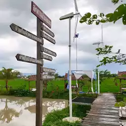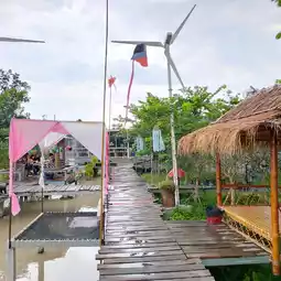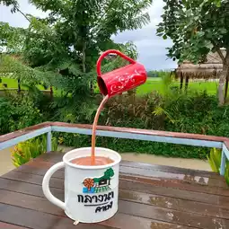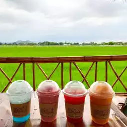 This beautiful cafe in the middle of a green rice field is considered another landmark for tourists visiting Nakhon Nayok. This cafe offers fresh air for everyone to experience. You can sit and eat delicious food and drinks with many menus to choose from. The cafe is beautifully decorated in a modern style. Customers sitting in the shop will be able to see the beautiful nature around the shop. Here, customers can choose to sit and relax, eat food and drinks in many corners, both inside and outside the shop. There are many corners outside the shop, including the bar area on the balcony, the bamboo pavilion area in the middle of the rice field, and the hammock area by the water. The recommended food here, which is delicious and delicious, is the signature that everyone who comes must order, which is the fried pizza.
