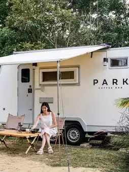 🌱 The shop is decorated in a minimalist style, white and brown. There are many areas to reserve seats, both inside, on the lawn, a 2-story white warehouse, and a small car camping corner.🚌