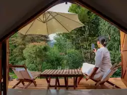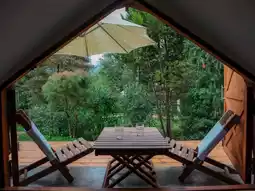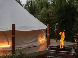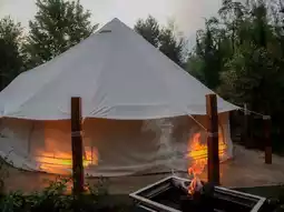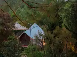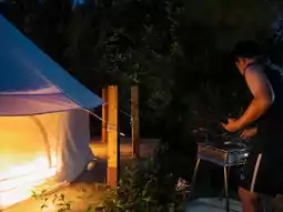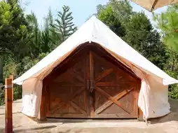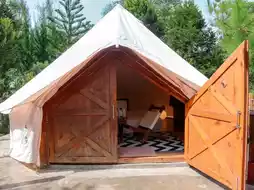 The bathroom is separate but private, just five steps from the tent, so you don't have to worry about the bathroom.