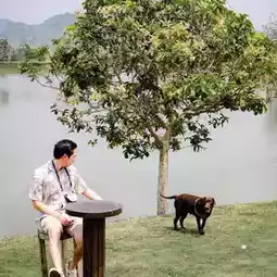 This charming cafe is surrounded by valleys and vineyards. The tiered hedges resemble tea plantations in the North. Behind the cafe is a small pond with a mountain backdrop. It doesn't get any better than this. If you're visiting Khao Yai, definitely stop by! Highly recommended!