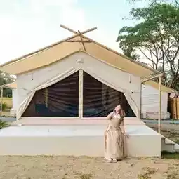 🏕️Lalabliss Camp Khaoyai Lalabliss Camp Khao Yai Resort & Villa is a newly opened camping-style resort in Khao Yai. It is a secret camp in the heart of Khao Yai. It is located on Thanarat Road, just 2 km from the entrance to Khao Yai National Park. The resort is surrounded by a 360-degree mountain view. The atmosphere is great. You can see the mountain view in full view. The resort has cute photo corners in a cafe style. In the early evening, there is a Campfire activity, sitting around the fire, roasting marshmallows. At night, watch the stars in the sky. It's the best. You can relax with nature to the fullest. Plus, this place is pet-friendly. Animal lovers can bring their dogs and cats to relax.