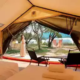 The resort has 2 types of accommodation: Safari Tent and 2 Villa Zones (both for 6 and 8 people). You can come here with your partner or with a gang of friends. The facilities are complete. Air conditioning, TV, refrigerator, water heater are all available.