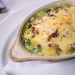 🥬🧀 Spinach baked with cheese is very good, Moo loves food.