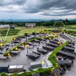 Midwinter Khaoyai is a restaurant in a castle in the middle of Khao Yai. It serves European and Thai fusion food, ready to serve deliciousness amidst music and a romantic atmosphere on Khao Yai Road. There are both outdoor and indoor dining areas, as well as a Throne Room, Drawing Room, and Gallery, which are rooms in every castle. There is also a playground for children to have fun and enjoy. The shop is open from 10:00 a.m. to 10:00 p.m. #CheckinKorat