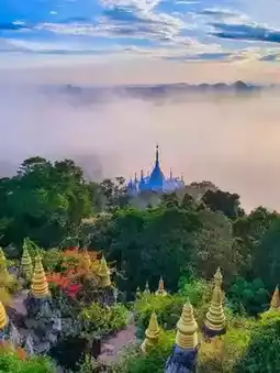 Sea of Mist and Panoramic Views: The mountaintop location offers early mornings the opportunity to witness a sea of mist covering the valley and forest below, making the chedis appear to float above the clouds. This breathtaking sight is truly heavenly. You can also enjoy panoramic views of the limestone mountains and forest.