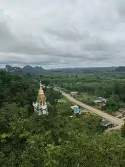 This hidden gem in Southern Thailand truly feels like stepping into another world 🍃 Surrounded by lush mountains and deep greenery, the atmosphere is peaceful, calm, and filled with spiritual energy 🌳✨