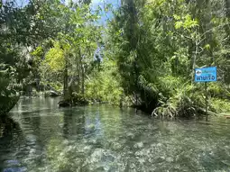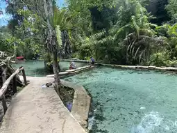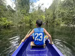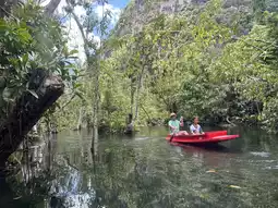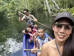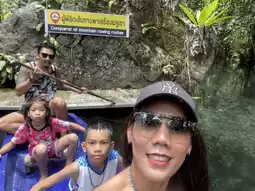 Inside, visitors can enjoy boating and nature watching. The clear water allows you to see many fish. The boating route is approximately 1.5 kilometers long, making a round trip about 3 kilometers. The nature is beautiful and very peaceful, making it an exciting experience for children.