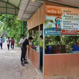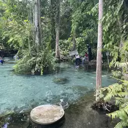 This is one of the most popular tourist destinations in Surat Thani Province, attracting both locals and visitors who come to admire the crystal-clear beauty of this natural spring. The site features a freshwater pond with a bluish-green hue, approximately 1 meter deep. The pond's bottom consists of sandy limestone sediment, which keeps the water clear and pristine at all times.