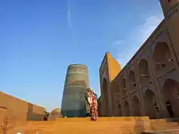 Take a 13:37-hour green train from Tashkent, cross the desolate desert, and you will arrive at the ancient city of Khiva.