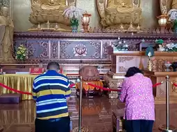 The temple is home to stunning Buddha images, particularly the three Phra Buddha Trairat (San Bao Fo) statues housed in the main chapel, creating a sacred and tranquil atmosphere perfect for worship and meditation. Another highlight is the large Guanyin Bodhisattva statue, enshrining four postures of Guanyin and 32 other stucco statues. The atmosphere is filled with devotion and inspiration.