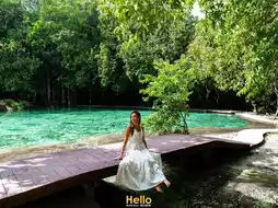 The water in the Emerald Pool is a clear green color similar to emerald green, as the name suggests. Sometimes it changes color according to the sunlight and you can swim. I recommend coming in the morning. There will be fewer tourists and you will have time to take beautiful souvenir photos. Water from the Emerald Pool flows along the area. Some places are streams, some places are ponds. There are also "Sa Kaeo" and "Sara Phut". The water temperature is 30-50 degrees Celsius because it is a hot spring and is also a very old natural mineral water.