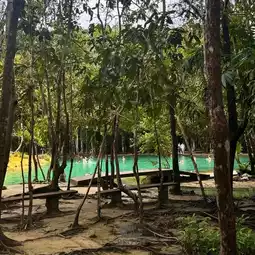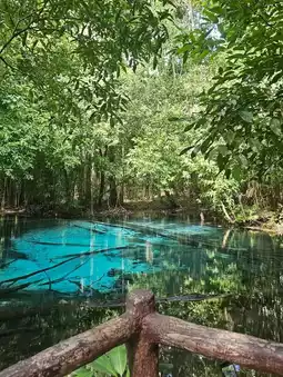 🏊 Emerald Pool, Krabi is a beautiful tourist attraction like a painting. With crystal clear emerald green water contrasting with the surrounding green forest. This pool is located in Khao Pra-Bang Kram Wildlife Sanctuary, which adds natural beauty to this place. Visitors can walk along the nature trail or swim in the Emerald Pool to feel refreshed. Emerald Pool is therefore a tourist attraction suitable for those who love nature and want to experience the pure beauty of nature.